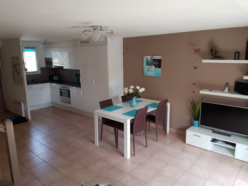 L’espace séjour et cuisine est conçu pour être pratique et agréable à vivre. Le salon comprend un canapé-lit pouvant accueillir deux personnes.